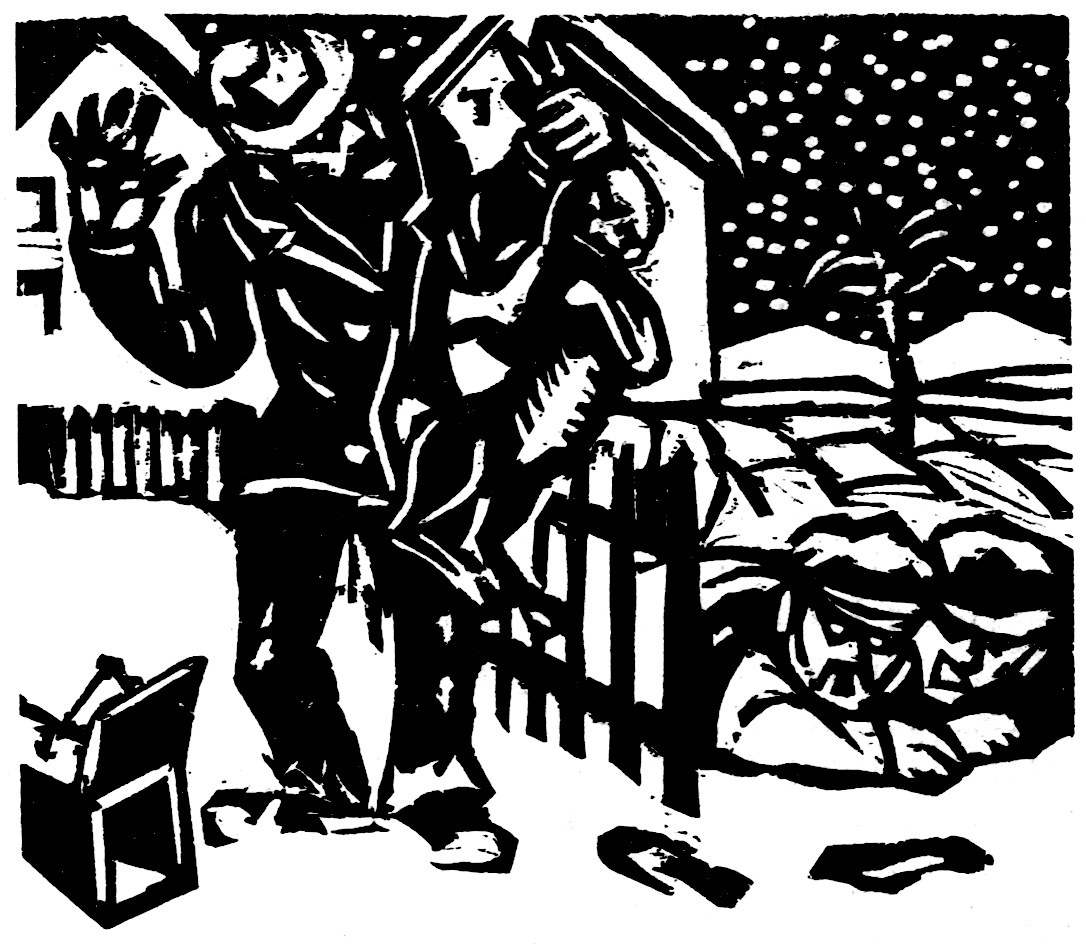 Nachfolgende Illustration der Geschichte - diese wurden meist am Ende des Textes eingefügt - gab es nur in der Monographie "Bensemer Plaschderstaa". Die Zeitungsartikel wurden - vermutlich um Platz zu sparen - nicht illustriert.